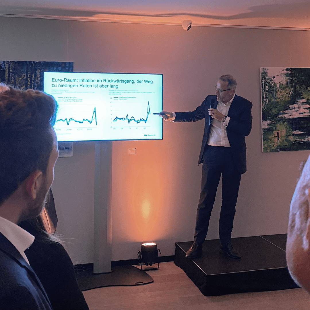 Als besonderen Höhepunkt hatten wir Herrn Dr. Jürgen Michels – Chefvolkswirt von der BayernLB – als Referent gewinnen können.